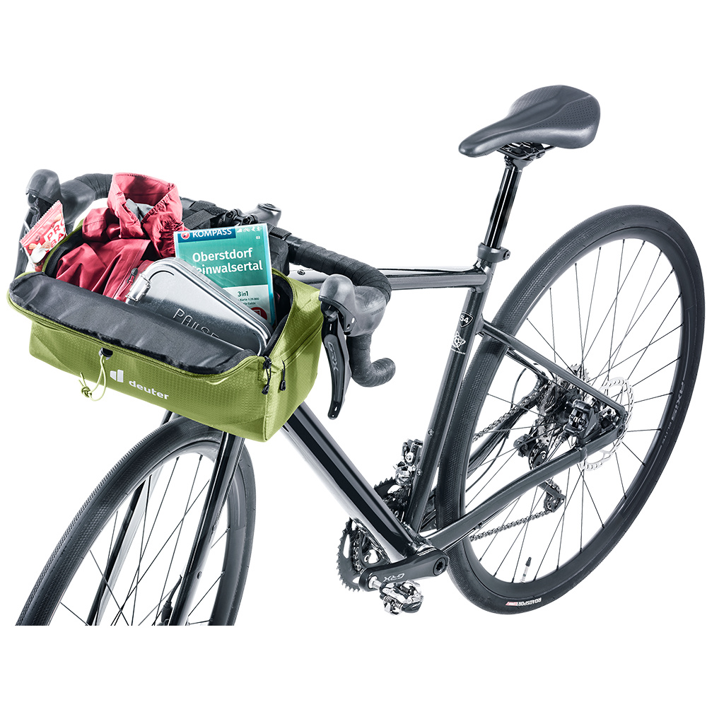 Vak Mondego HB 8 od značky Deuter je praktická brašna na řídítka, která zpříjemní vaše cyklotoulky. Prázdný vak téměř nic neváží, ale poskytne vám tolik prostoru, o jakém se vám při cestování na kole ani nesnilo. Má hlavní komoru na zip, která je dobře přístupná, a vejde se do ní spousty potřebných věcí. Ať už mapa, GPS, větrovka, nebo nějaké to nářadí. Navíc má na víku strečovou šňůru, pod kterou můžete vložit třeba mokrou pláštěnku. Velmi rychle ho připevníte pomocí dvou pevných popruhů na suchý zip na různé typy řídítek, protože si můžete vybrat ze čtyř distančních podložek právě podle typu těch vašich. A když se vybavíte i ostatními vaky z řady Mondego, užijete si svá cyklo dobrodružství na maximu.