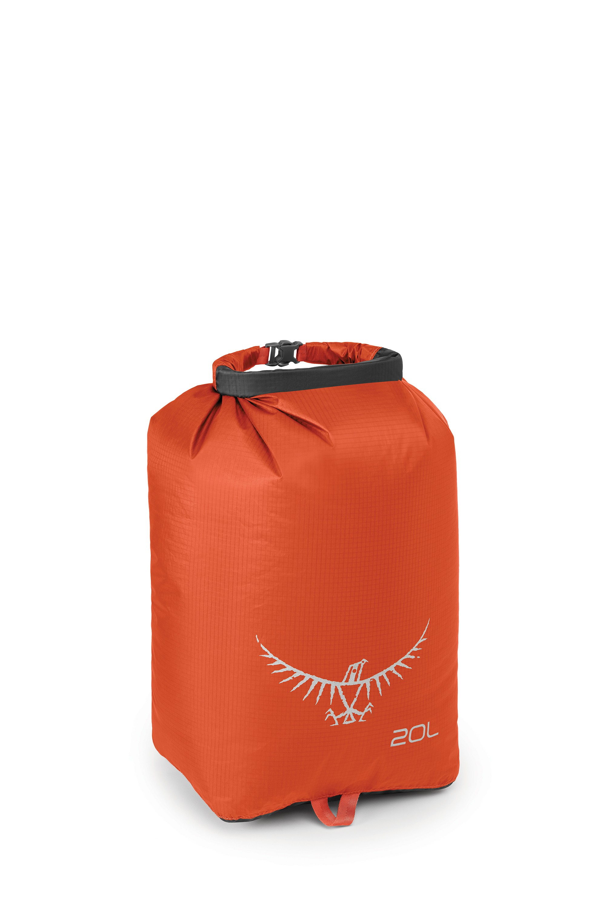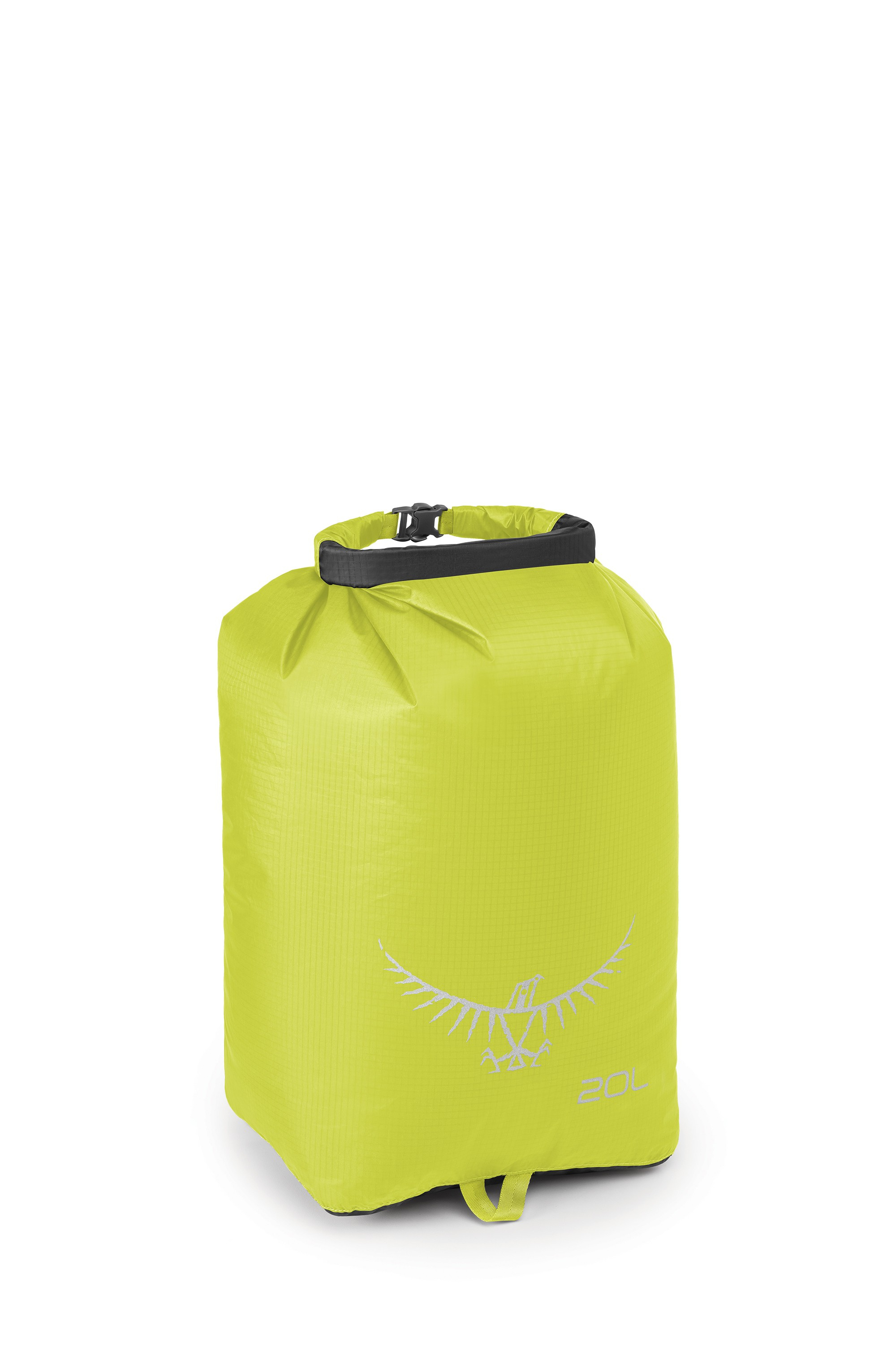 Vak Osprey Ultralight Dry Sack 20 L je vyroben z silikonizovaného nylonu s ripstop úpravou. Řada vaků Ultralight Drysacks je navrženy tak, aby ochranila Vaše dokumenty a vybavení před vodou a deštěm. Osprey Ultralight Dry Sack je idální pro organizaci věcí v batohu či tašce, proto se vyrábí v různých velikostech 3L - 30 L, tak aby se flexibilně pokryla potřeba ochrany a organizace Vašich věcí, z důvodu větší přehlednosti jsou vaky vyráběny v různých barvách. Vak je uzavírán plně vodotěsným roll-top zavinovacím systémem, silikonizace materiáu a podlepené švy zajistí, že Vaše zařízení zůstane v suchu za jakýchkoliv podmínek. Na rozdíl od jiných vaků, mají vaky Osptrey obdélníkový tvar, což má za následek efektivnější balení. Díky obdelníkovému tvaru dna vaky samy stojí.
