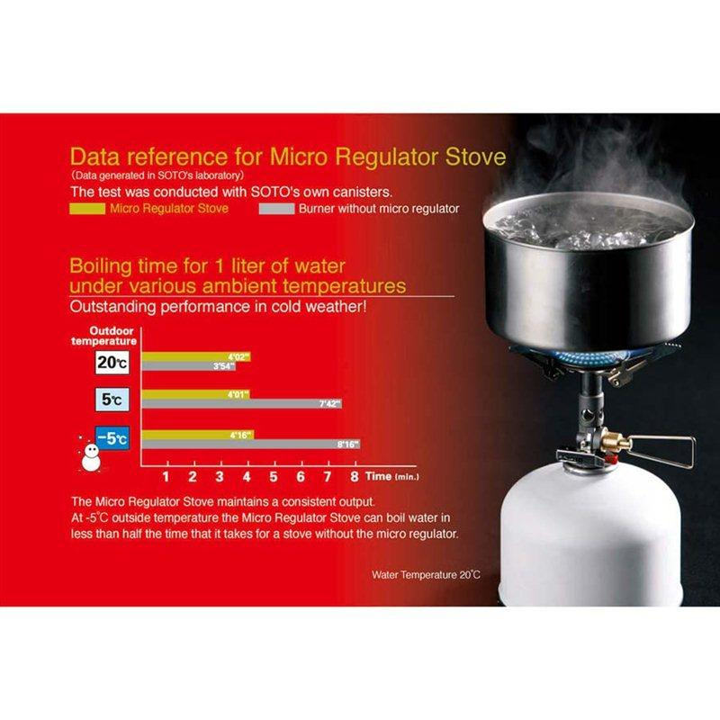 Ultralehký plynový vařič Soto OD-1R s revolučním mikro-regulátorem. Díky mikroregulátoru je zaručena kontinuální stabilita plamene a tím i jeho výkon bez závislosti na změně teploty okolí. Integrované Piezo zapalovaní, které zjednodušuje zapalovaní vařiče, je instalované uvnitř přívodní plynové trubice a je tím chráněno proti mechanickému poškození při transportu apod. Součástí vařiče je přepravní pouzdro.