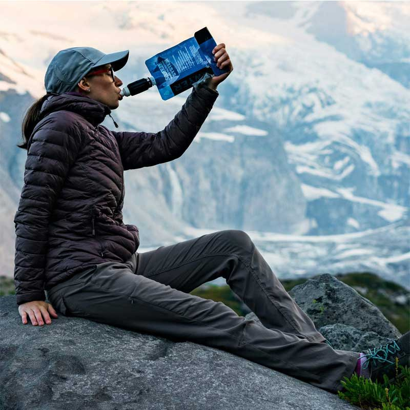 Použití je jednoduché – naberte do láhve/vaku vodu z jezera, potůčku nebo řeky, našroubujte na ni Sawyer filtr a máte čtyři možnosti:
