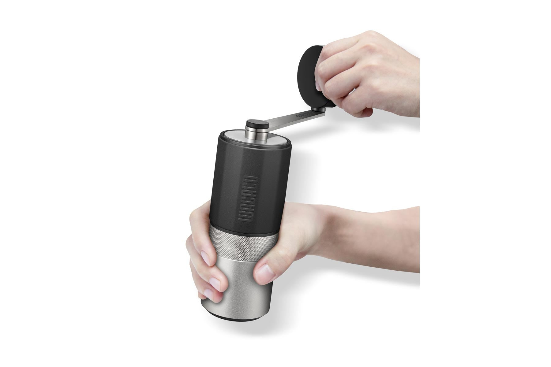 Kompaktní a robustní ruční mlýnek na kávu s nastavitelnou jemností mletí, který na jedno naplnění namele až 20 g kávy, sklopná rukojeť pro snadný transport, silikonový povrch pro snazší manipulaci.