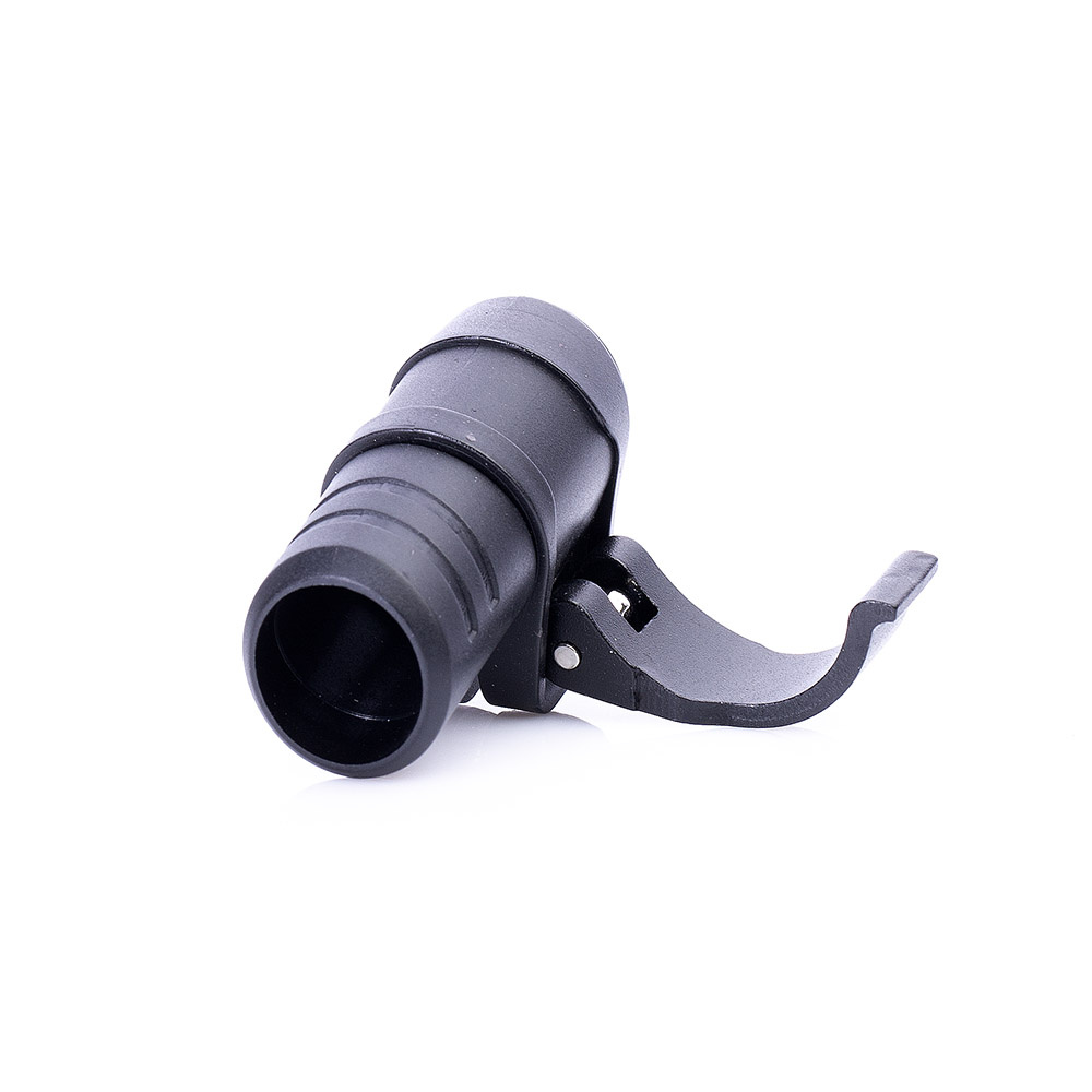 Kompletní mechnika systému flip-lock s objímkou pro hole o velikosti průměru dle zvolené varianty. Verze s černou ALU páčkou a černým kolečkem dotahovací matičky.