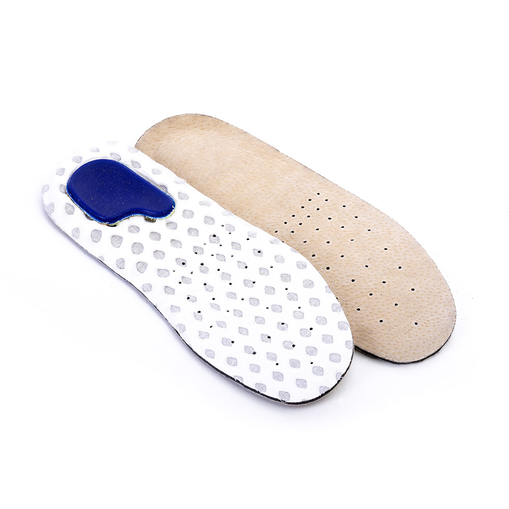 Výměnné vložky do obuvi s povrchem z přírodní kůže, tlumičem došlapu pod patou a mezivrstvou z aktivního uhlí.