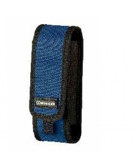 nylonové modré pouzdro Wenger na kapesní nože pro umístění na opasek nebo popruh s možností vertikálního i horizontálního upevnění, zapínáním na suchý zip a vnitřní kapsou na drobné doplňkyVíce