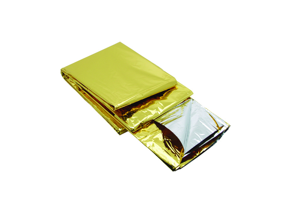Záchranářská fólie zlatá/stříbrná pro udržení v teple, nebo jako ochrana před sálavým teplem, verze