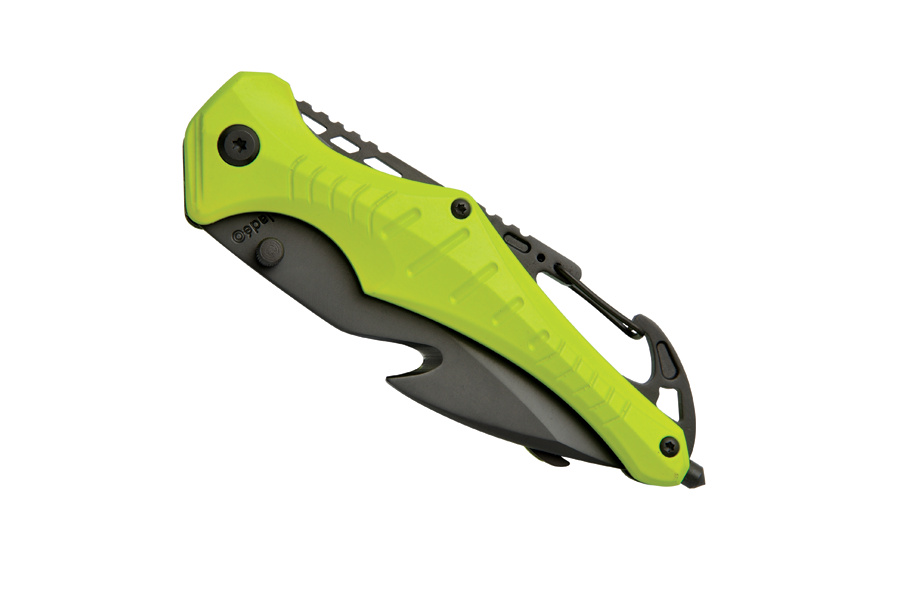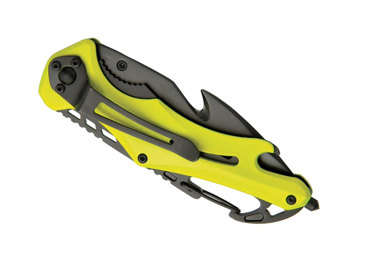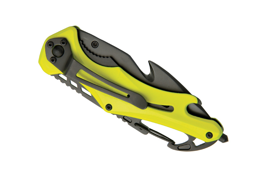 Záchranářský nůž v technickém provedení s reflexním zbarvením.