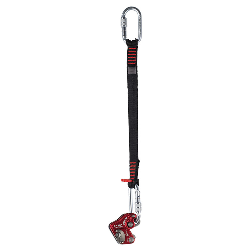 Zachycovač pádů CAMP Goblin v kombinaci se smyčkou CAMP Goblin Lanyard a připojovacími ocelovými karabinami CAMP Oval Pro Lock.