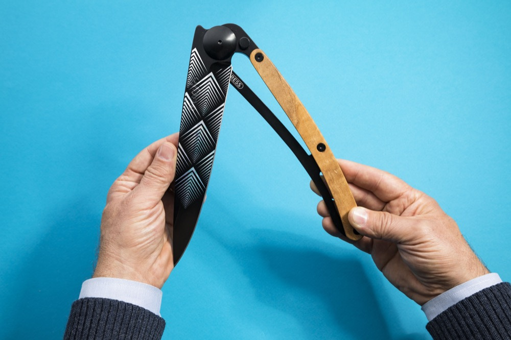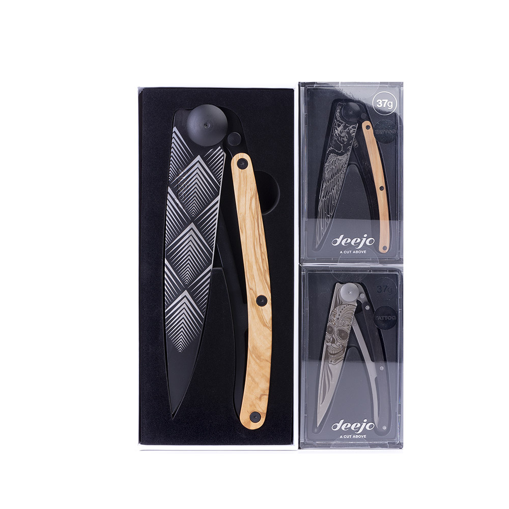 Největší nůž Deejo, jaký si jen lze představit, v provedené se stylovým tetováním Art Déco.